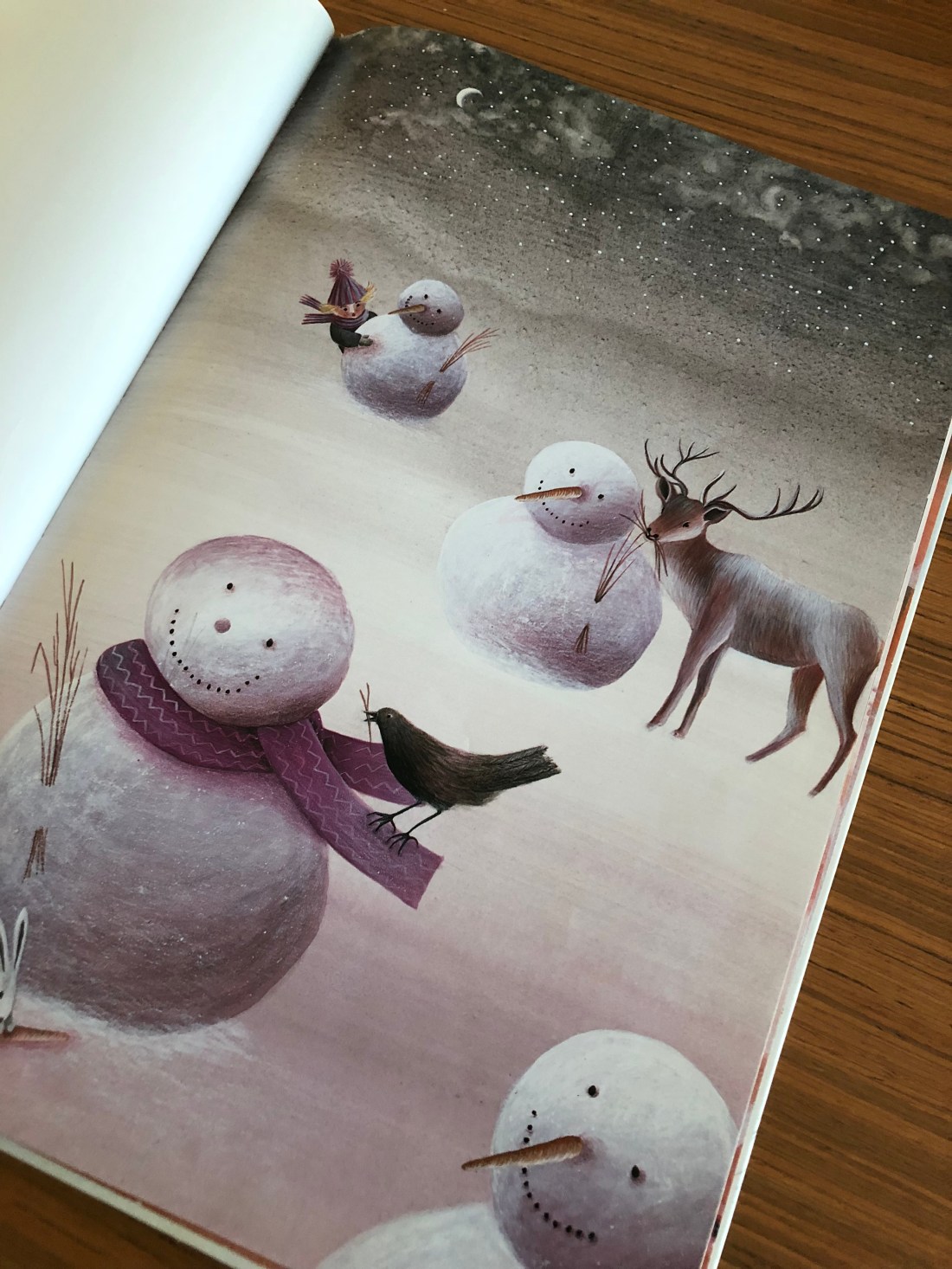 … sono gli animali del bosco a rovinarli!!! Infreddoliti e affamati, infatti, di notte si avvicinano per mangiare il cibo sui pupazzi. La rabbia lascia il posto alla meraviglia ma anche all’empatia verso chi ha bisogno d’aiuto: Simone, infatti, non può starsene senza far niente e così decide di coinvolgere tutto il paese. Ottenuta la fiducia degli animali, li guida al limitare del bosco e spiega agli abitanti l’accaduto, sensibilizzandoli. Così, proprio in quel punto, viene costruita una mangiatoia dove gli animali possano andare a sfamarsi durante l’inverno e grazie a questo Simone comincerà ad apprezzare anche le altre stagioni perché avrà dei nuovi amici con cui giocare.