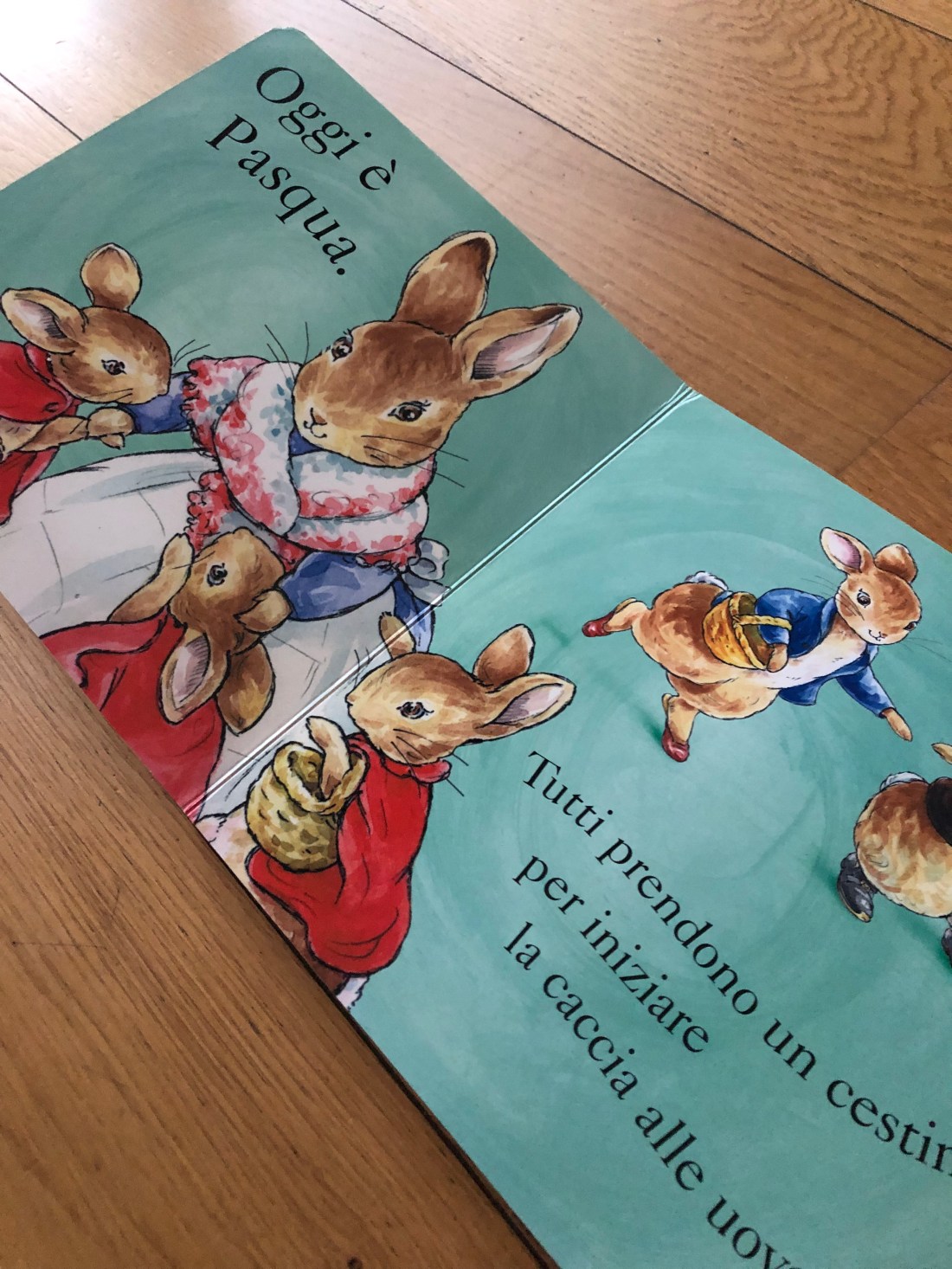 Con una storia semplicissima – la caccia alle uova – e un colorato pop-up finale, è organizzato come un cerca-trova con le finestrelle, sollevando le quali aiutiamo i coniglietti nella caccia: troveremo un uovo o un pulcino?