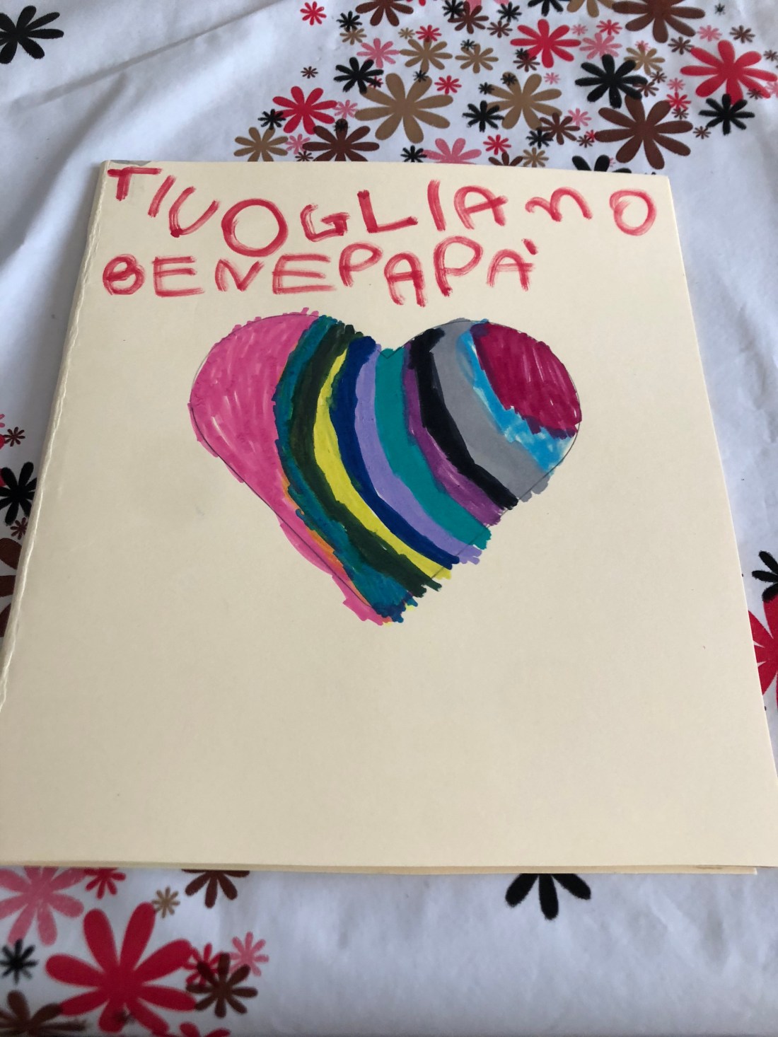 Sulla copertina noi abbiamo deciso di fare un cuore con scritto TI VOGLIO BENE PAPÀ.